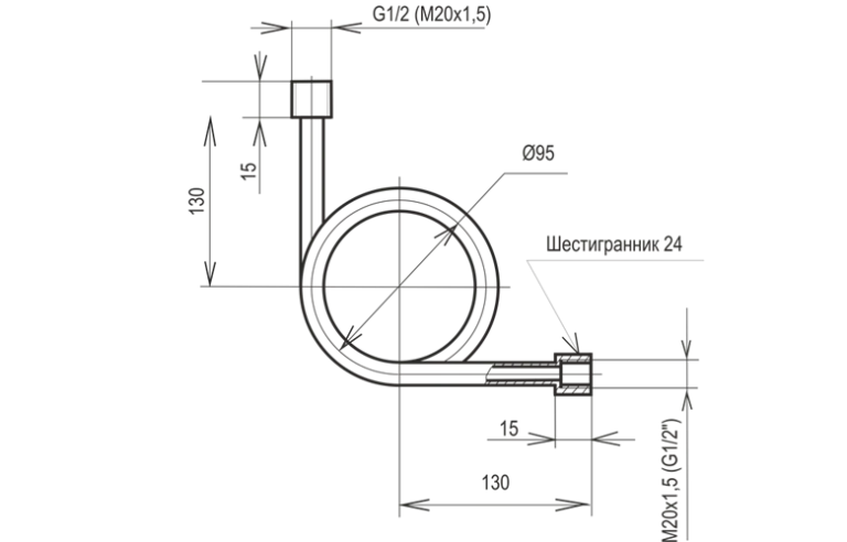 Трубка сифонная (Перкинса) угловая М20×1,5 — G1/2′