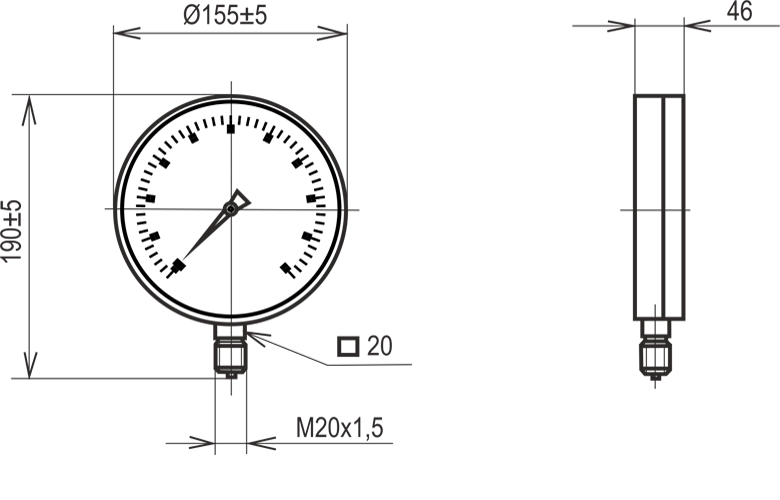 - Простота монтажу та експлуатації: радіальне розташування штуцера та зручний корпус роблять роботу з манометром максимально легкою.